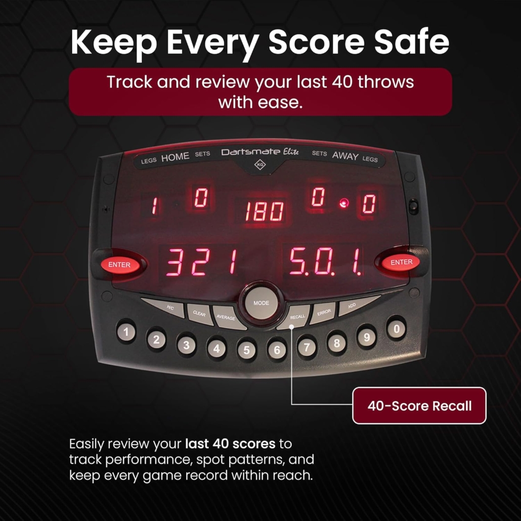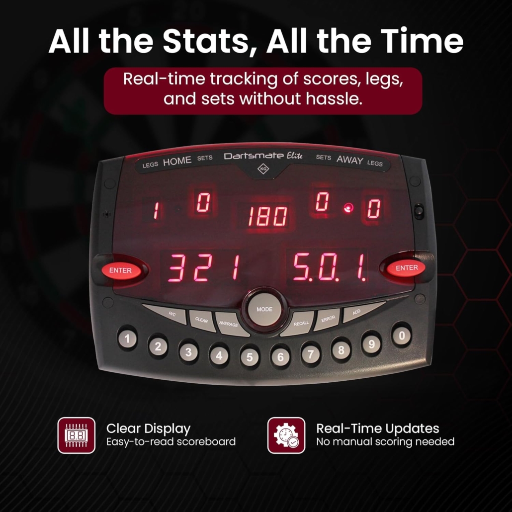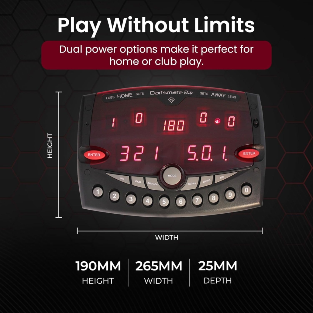 The New Dartsmate “Elite” is the latest electronic scorer in the Dartsmate range. The well proven technology has been updated and given a smart new case. Similar to the Dartsmate 3 or Chalkie+ but includes player score addition and play against the computer.