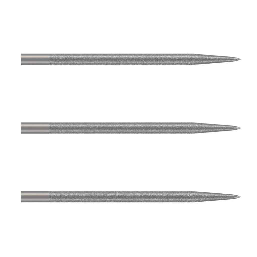Shot Lucent Carbon Crystal Dart Points reduce bounce-outs and slice cleanly into sisal with consistent penetration and minimal deflections. Tool-grade synthetic diamond is bonded to the steel points, forming a rigid tetrahedral carbon crystal structure. Each point is uniformly coated, ensuring a consistent grip and adhesion to the dartboard. The microscopic diamond particles provide an incredibly hard, wear-resistant surface that maintains its texture throw after throw.